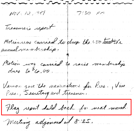 1981 seems to have been a low point in the life of the Tulsa Amateur Radio Club, judging by the the surviving records. In November 1981, some old business about having a club flag was held over until the next meeting and never heard again. See the minutes attached to this message.