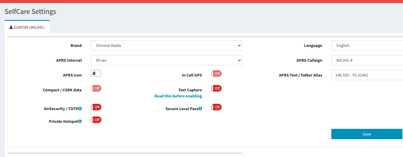 - Login to Brandmeister to set APRS